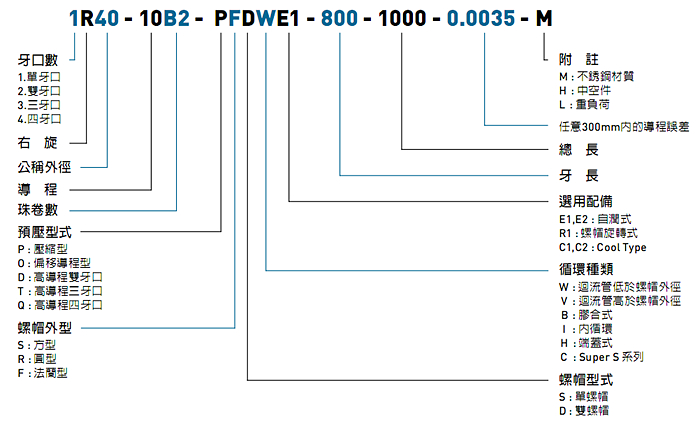 上銀滾珠絲杠的規(guī)格型號(hào)