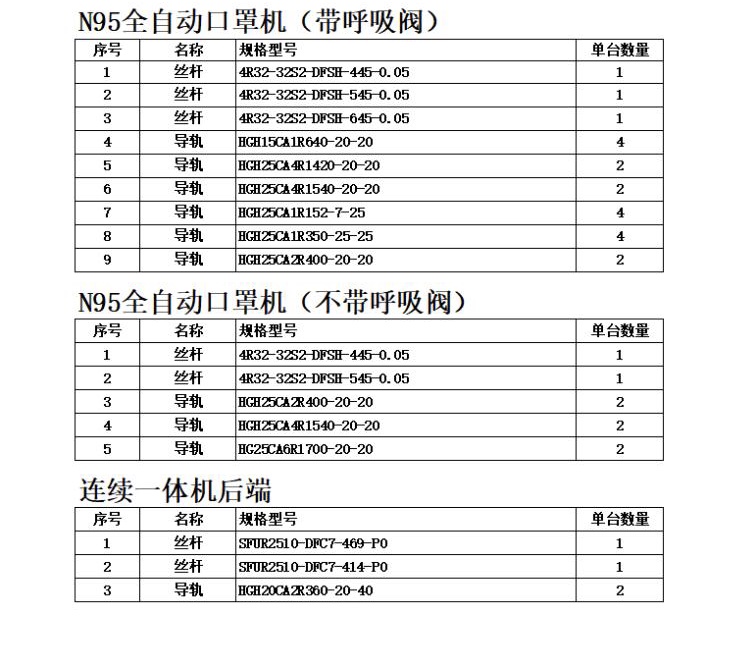 文章標(biāo)題:N95全自動(dòng)口罩機(jī)上銀導(dǎo)軌絲桿型號(hào)生產(chǎn)廠家
