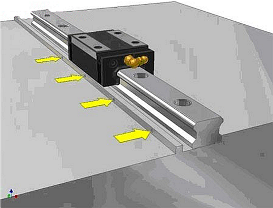 步驟.1:在安裝直線導(dǎo)軌之前必須清除機械安裝面的毛邊、污物及表面?zhèn)邸?/strong>