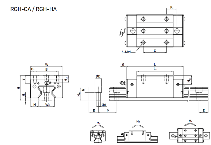 RG系列線性滑軌采用DB(45°-45°)組合,能承受上下和左右方向的負荷,讓線性滑軌具有超高負載能力。在相同工作負荷的要求下,RG線軌相較於滾珠型線軌可有較小的體積,即可均