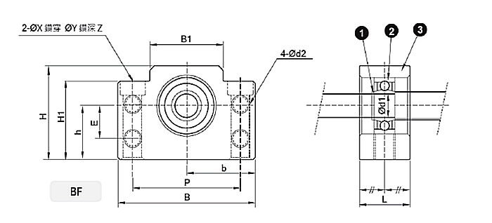 BF系列支撐座特性: 1、高剛性,適用于各種工作環境 2、噪音低 3、防塵效果好,衛生等級高 4、高精度,保證設備穩定運行 |