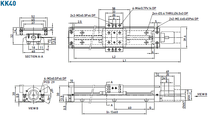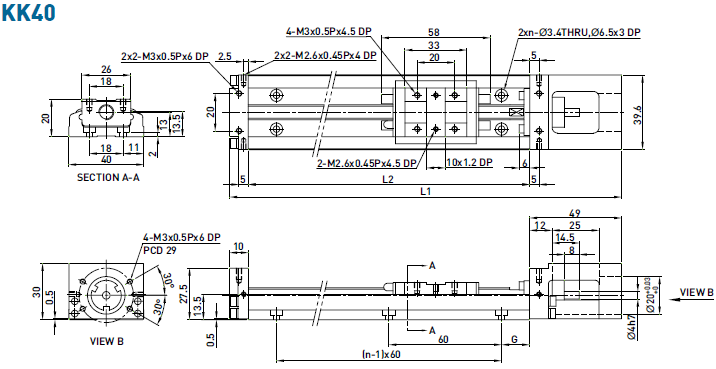 不含護蓋的KK40精密模組尺寸說明: